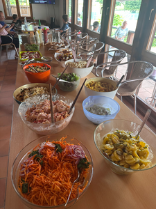 Nach dem sportlichen Teil ging es am Nachmittag ganz entspannt weiter. Bei Gegrilltem, bunten Salaten, leckerem Kuchen, Obst und Süßem wurde gemeinsam gefeiert, geredet und gelacht. Ein riesiges Dankeschön geht an unsere Damenmannschaft, die diesen tollen Tag auf die Beine gestellt hat und uns bewirtet hat – besonders an Lara und Jule, die das Sommerfest mit viel Engagement vor Ort organisiert und durch das Turnier geführt haben.